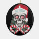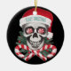 För den mörkare sidan av helgdagarna har den här prydnadsdesignen en skalle i en julhatt och korsben av polkagrisar. Den malande skallen sitter i en bushel av Julgran grey. Baksidan av denna dekoration har ett utrymme för din egen anpassningsbar Julhälsningar. Skriv ditt meddelande i sidlisten fält och klicka på miniatyrbilden som visar ornamentens baksida för att se exakt hur det kommer att se ut när det skrivs ut.