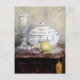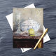 Ett fint konstkort med målningen med titeln, Skål och äpple (1877) av den franska impressionisten Berthe Morisot 1841-1895). Ett fantastiskt stilleben-kort som visar ett levande grönt äpple bredvid en klassisk blå och vit skål och ett glänsande kristallglas.