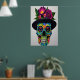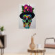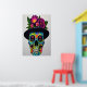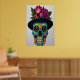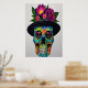 En färgstark skalle med många färg som blått, gult och rött täckt med blommor. Det här är en AI-skapad konst.