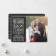 Exquisite, flourated chalk hand-lettering på en kalkbrädesbakgrund, bredvid ditt favoritfoto, för New Year hälsning. Om du vill anpassa extra lägger du till ytterligare ett foto på baksidan över mönster. Se till att hitta samordningsobjekt i Cheers!-samlingen av Laura Bolter Design.