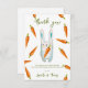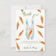Könsneutrala inbjudningar till babydusch. Ett exempel på en vattenfärgsbunny (kanin) med morot i tassar och många morötter i orange färg. Matchande objekt är tillgängliga.