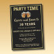 Denna Stylish Cheers and Beers Party Time-guldljus på en svart och guld 30-års födelsedagsinbjudan kan fullständigt anpassas (inklusive året). Den har både en touch av humor och mer än en touch av klass... och är redo att sätta scenen för denna speciella kväll. Färgerna kan också ändras. Om du behöver designhjälp, skicka ett chattmeddelande och vi hjälper dig gärna. Finns som tryckt inbjudan eller nedladdningsbar digital fil för e-post eller lokal utskrift.