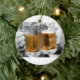 Fotografi av två mugg öl som hålls emot varandra. Öl i mugg färgat; återstående foto är svart och vitt. Visas i runda prydnadsföremål, annan tillgänglig stilar. Bakgrund färg av ditt val. Anpassade.
