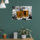 Fotografi av två mugg öl som hålls ihop. Ölen i mugg är färgad, medan den återstående ytan på fotografiet är svart och vit. Guld färg gräns.
