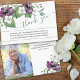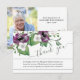 Bekvämt tack med handskrivet elegant och vattenfärgsfärgade anemoner och vita blommor i lilan. Mallen är konfigurerad så att du kan lägga till ett foto "i kärleksfullt minne" på baksidan med din kära namn och ditt tack till personligen på framsidan.