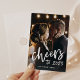 Det här moderna gott nytt år-kortet i elegant för 2023 har trendig-skripttypografi med vita avslappnader som säger "cheers to 2023" och innehåller ditt favoritfoto.