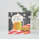 Skål till 30 års barbecue-inbjudan med en mugg & burgare på en svart bakgrund med hängmason burk ljus