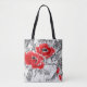 Skalad blommigt av rödblommor i hand plockade tygkasse