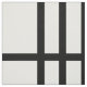Snyggten har ett fetstilt geometriskt mönster med grupper med fem lodränas svart rand delat med vågrät svart linjer. Den svarta på vitt-designen har ett klassiskt utseende och är en originalskapelse.