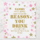 Lustigt Rosa Guld Vin-etiketten "Ljug med den lustiga och tankfulla etiketten vin flaska med det lekande citatet "[Namn], vi kan vara orsaken till att du dricker, så ha en flaska på [Ditt namn/Team Namn]". Omgiven av en chic rosa och guld stjärna gräns, är denna design perfekt för chefer, lärare, medarbetare, vänner eller någon som förtjänar ett skratt och ett tack. Den här redigerbara etiketten är perfekt för gåvor vid årets slut, läraruppskattning, party eller firande, och gör att du kan anpassa namn och meddelanden för alla tillfälle. Det är ett enkelt men roligt sätt att förvandla ett vanligt flaska till en minnesvärd, hjärtlig gåva. Designad av The Arty Apples, denna anpassningsbar vin-märkning förenar humor och stil - perfekt för att uttrycka tacksamhet, fira framgång eller säga tack med en blinkning.