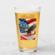 Detta drickglas har en design med en skallig örn och en amerikansk flagga i bakgrunden. Detta glas skulle vara bra att använda den 4:e juli eller någon annan dag för att visa din patriotism.