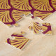 En mönster av sjöjungfrun skalas i en mörk magenta färg, med guld som bakgrund. Skalorna är i konst deco stil.
