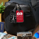 Skalor för justitiemord med text vid omvänd text bagagebricka