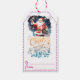 En underbar julklapp med märkre har en glad Jultomten som viftar med en väska av presenter.