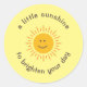 Skämt gult runt dekal med frasen "lite solljus för att göra din dag ljusare". Perfekt för lycklig-post eller småföretagsförpackningar, uppmuntran eller jakt på bra kort, särskilt i fodral där diagnosen kan vara terminal. Du kan redigera texten om du vill.