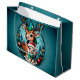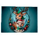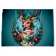 Skämmande och inbjudande julillustration med en tecknad hjort och ett lamm omgivet av en harmonisk blå grönt som skapar en vintring. Hjorten står skyddande bakom lammen, som är klädd i en mysigt grönt svettare och har en ljusröd tomhatt på huvudet. Både glädje och vänskap utstrålar, och deras stora, uttryckliga ögon är entusiastiska. Lampan tittar märkligt och lyckligt ut i världen, medan hjorten förstärker sin närvaro med ett milt leende och drar tittaren in i den festliga andan.