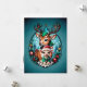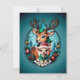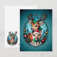 Skämmande och inbjudande julillustration med en tecknad hjort och ett lamm omgivet av en harmonisk blå grönt som skapar en vintring. Hjorten står skyddande bakom lammen, som är klädd i en mysigt grönt svettare och har en ljusröd tomhatt på huvudet. Både glädje och vänskap utstrålar, och deras stora, uttryckliga ögon är entusiastiska. Lampan tittar märkligt och lyckligt ut i världen, medan hjorten förstärker sin närvaro med ett milt leende och drar tittaren in i den festliga andan.