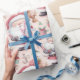 Detta vackra pappra kännetecken illustrerar hur Jultomten kan njuta av julhelgen. Att omge honom är glada renar, polkagrisar, festliga gåvor och glatta prydnadsföremål.