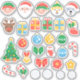 Krymliga, flerfärgade julklistermärken med tomater, renar, lvar, snögubbe, polar, presenter, rött och grönt, dekorationer, polkagrisar, rödstrumpor osv.