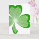 Ett modernt mönster med en stor strålande, mousserande schamprock mot vit bakgrund och ord 'Lycklig St. patricks' dag' skrivet i grönt. Hälsning-kort med en anpassade som du kan anpassa med din bakgrund färg, text, bilder och idéer. Skapat med originalfotografier och digitalteknik av Jess Perry.