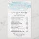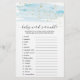 Det här vattenfärgsblått och guld "baby ord scramble"-spelet är perfekt för en dusch i elegant pojke. Spelkortets framsida har "mamma eller pappa?" och baksidan av kortet har "baby ord-krympning". Den lyxiga designen har en ljusblå vattenfärg struktur med ett stänk av vackra faux guld glitter och ett modernt kalligrafskript med typsnitt. Anpassa kortets framsida med namn i mamma till att bli bebisduschdatum. Du kan anpassa spelfrågorna genom att klicka på knappen "anpassa". BABY SCRAMBLE SVARARE NYCKEL: 1.Diaper 2.Bassinet 3.Flaska 4.Crib 5.Nappar 6.Changing Bord 7.Mjukisdjur 8.Barnvagn 9.Rubber Anka 10.Blanket 11.Teether 12.Formula 13.High Ordförande 14.Mobile 15.Thermometer PLEASE OBS: Detta är utformat inte i guld glitter. Det är en högkvalitativ grafik som framstår som guld gnistra.