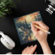 Skandinaviska återförebilder av en stuga vid sjö i en bergsskog, till ge i ditt hem, en nordisk känsla