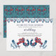 Unik Folk Art av Designer LeahG (upphovsrätt) finns med på denna moderna bröllopsinbjudan. Färgerna röd, turkos, vit och teal passar för alla säsonger. Du kan redigera texten för att passa valfritt evenemang.