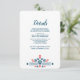 Inspirerad av de fräscha och djärva elementen inom skandinavisk design, har detta kort för bröllopsdetaljer vackra blomillustrationer i rött och blått.