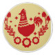 Den här skandinaviska röda kycklingknoppen kan matcha kottagecore, bondhus eller många köksteman. Den neutralt-tonade bakgrunden gör att den röda designen hamnar och ser vintage, roligt och exakt ut på allt.