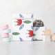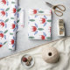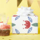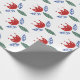 Semestra slå in papper med ett modernt och enkelt mönster av röda tulpan och löv i blått och grönt i en skandinavisk folksy stil.