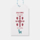 Moderna, konstnärliga Juletiketter med skandinaviskt/nordiskt mönster som innehåller röda hjärtan (med löv och blommor), röda bubblor (med snöflingor), turkosrenar och anpassadet "god jul". Med ett namn som du kan anpassa dig till.