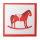 Den här fantastisk-mönstrade julplattan har en digital bild av en söt skandinavisk stil-rockande häst. Hästen är röd med en röd mörk, svan och hovar. Den vänliga hästen ler. Den har en vit sadelhäl och håller sig med söt Red Scandi folk stil mönster på sadeln, inklusive sol, måne och stjärnor, hjärtan och blommor. Gråhästen är röd och täckt i söt vita löv. Utformningen inspirerades av den svenska Dala-hästen.