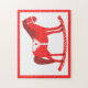 I det här fantastisk-julpusslet finns en digital bild av en söt Scandinavian stil rocking horse. Hästen är röd med en röd mörk, svan och hovar. Den vänliga hästen ler. Den har en vit sadelhäl och håller sig med söt Red Scandi folk stil mönster på sadeln, inklusive sol, måne och stjärnor, hjärtan och blommor. Gråhästen är röd och täckt i söt vita löv. Utformningen inspirerades av den svenska Dala-hästen.