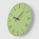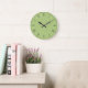 Ljusblått hand plockade enkelt löv mönster på ljust grönt bakgrund Skandinaviskt stil med romerskt tal klockan ansikte ge den här klockan mångsidighet att följa med moderna, land, vintage eller roliga dekorationsteman