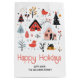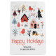 Den skandinaviska folkkonsten stil vintern ger julklapp för helgdag. Det är en vintermiljö med hus, träd och djur och texten "Glad helg".