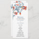 Inspirerad av den traditionella norska rosemålningsstilen, har detta bröllopsprogram en blå virvlande cirkulär kantdesign med orange, grå och röda blommor på en vit bakgrund. Textdelarna i denna inbjudan är anpassningsbara. Framsidan av kortet visar händelseförloppet medan baksidan visar bröllopspartiet. Denna artikel är en del av en samling, besök vår butik Borghild's Boutique för andra matchande artiklar.