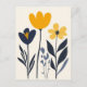 Lemon gult petals är hög över löv med djup indigo, centrerad på en neutralt elfenbensbakgrund för ren, modern balans.