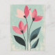 En shock rosa-blomma poppar över coola teal-löv, lagrade på en fyrkantig grönt-bakgrund - perfekt för fet, glatt insida.
