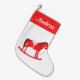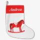 Den här fantastisk-julklappen har en digital bild av en söt skandinavisk stil-rockande häst. Hästen är röd med en röd mörk, svan och hovar. Den vänliga hästen ler. Den har en vit sadelhäl och håller sig med söt Red Scandi folk stil mönster på sadeln, inklusive sol, måne och stjärnor, hjärtan och blommor. Gråhästen är röd och täckt i söt vita löv. Utformningen inspirerades av den svenska Dala-hästen. Det finns anpassningsbar på framsidan så att du kan anpassa den här designen med ett namn.