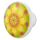 En keramisk lådknapp/dragknapp med en färgad som avger en gult blomma med rosa ros