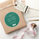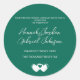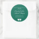 Anpassa dessa klassiska runda etiketter med önskat namn, datum eller meddelande. Perfekt för bröllop och andra evenemang. Färgen som visas är smaragdgrön. Använd mallen för att skapa dina egna etiketter.