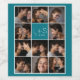 Turkos och vit bakgrund - Använd 11 fyrkantiga foton för att skapa en unik och personlig årsdagspresent. Lägg till brudens och brudgummens initialer och datum. Om du behöver justera bilderna eller monogrammen klickar du på anpassningsverktyget för att göra ändringar.