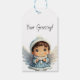 Skapa Din Egen Brunett Pojke Blå Ängel Jul Presentetikett
