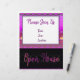 Anpassa all text på den här flygaren eller så går det inte att ta bort texten. Färg är lila, plommon, rosa och gyllene med svart. Mönstrat formgivarhuvud.