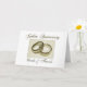 Två gyllene vigselringar som symboliserar 50 års äktenskap för paret som firar gyllene bröllopsdag. Ljus krämfärgad bakgrund med guldfärgade accenter och typsnitt gör denna design perfekt för det par som firar 50-årsjubileum.