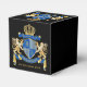 Skapa din mycket egen aristokratiska Jacka av Arm, Emblem, Insignia eller Familjekort med den här vackra, klassiska eskort- eller sköldesignen. Koboltblått mönster dekorerar en sköld som är täckt med guldfärgat krona och täckt av medeltida heraldisk lejon eller griffin. En matchande översta banderoll innehåller ditt personligt bröllp-datum/födelsedatum/slogan eller strid gråter. Skölden har plats för ditt monogram initialer. Grund-banderollen bär din familj namn. Det finns även utrymme nedan för ditt favoritcitat, motto eller meddelande. Byt ut exempeltexten mot en egen personlig. Jag designade detta för att arbeta för familjer, par och individer. Gör en underbar gåva till Internationell Heraldry Day, Medieval eller Fantasy-temat party, Bröllop, årsdag, födelsedag, Pension, marknadsföring, Far, Bachelor Party, Möhippa, Studenten och andra särskilda tillfällen.