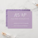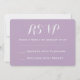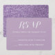 Enkel anpassningsbar lila och vit text bröllops-RSVP. Enkel och ren enfärgad bakgrund. Klassisk elegant typsnittsstil, men du kan välja mellan många alternativ som passar perfekt för ett speciellt bröllopsevenemang. Ett fint lila med en vit samtida kalligrafisk tacksamhet bröllopsdesign med ett foto av ametistfärgade glitterbokeh. Skapa din egen anpassade bröllops-RSVP. Vit text på en enkel enfärgad bakgrund, men du kan anpassa typsnittsstil, storlek och färg, samt bakgrunden.