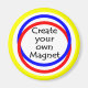 Skapa en egen magnetmall. Rund - Liten: 250 x 250 pixlar (1,25 tum diameter), Standard: 450 x 450 pixlar (2,25 tum diameter), Stor: 600 x 600 pixlar (3 tum diameter) Kvadratisk - Standard: 400 x 400 pixlar (2 tum x 2 tum))