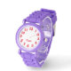 Det här exemplet har ljusröda tal på en vit solid färg-bakgrund, men du kan plocka färg för den här klockan med stora, fetstilta kursiva stil-teckensnittsnummer. Du kan anpassa siffror och text med färg som är din favorit. Om du vill anpassa ytterligare kan du prova att lägga till ett foto bakom de stora, feta numren om du vill anpassa klockan ansikte. Jag tycker om de här glitter-klockbanden. Synd att de inte är för vuxnor!