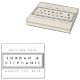 Skapa Din egen Skapa Din egen Snyggt Modern Spara datumgummi frimärke med hjälp av denna lättförståeliga mall som skapas för dig av gummi frimärke. Perfekt för ett par som snart kommer att gifta sig tittar att göra sin korrespondens personligt tryckt. Den här designen har en ren och lättläst rektangulär design som innehåller parets namn, datum och ord "spara datumet". Klicka på knappen "Anpassa den här mallen" och lägg till dina egna uppgifter i mallen och kontrollera sedan de stora storlekarna på bläck färg och frimärke som Zazzle måste erbjuda.